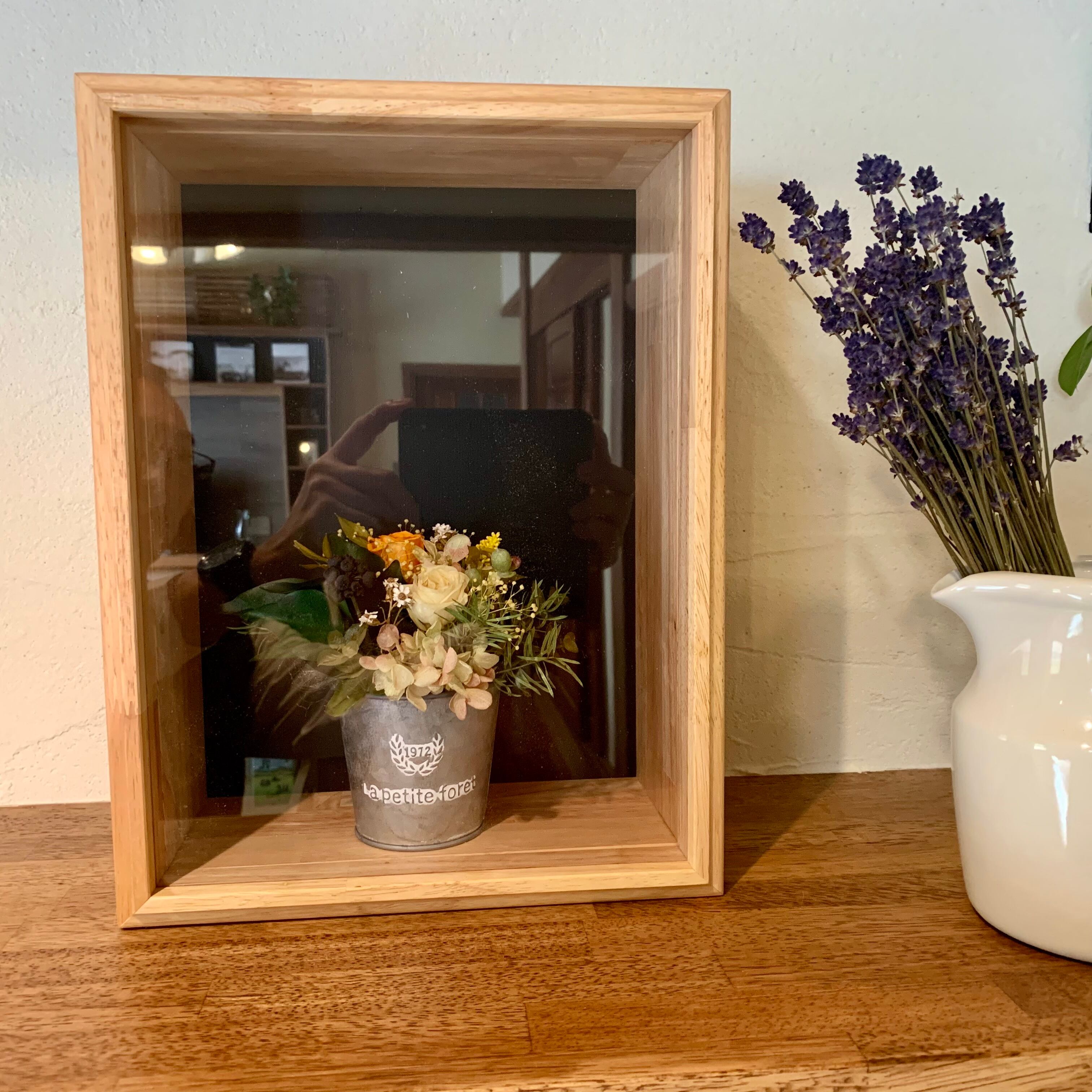 こちらの商品は、ゴムの寄木でつくったディスプレイボックスで、リビングなどの壁に取付けてお気に入りの雑貨を飾ったり、オリジナルにアレンジしたディスプレイをつくって楽しんだりと、使い方は色々。カウンターやチェストに置いてご使用することもできます。